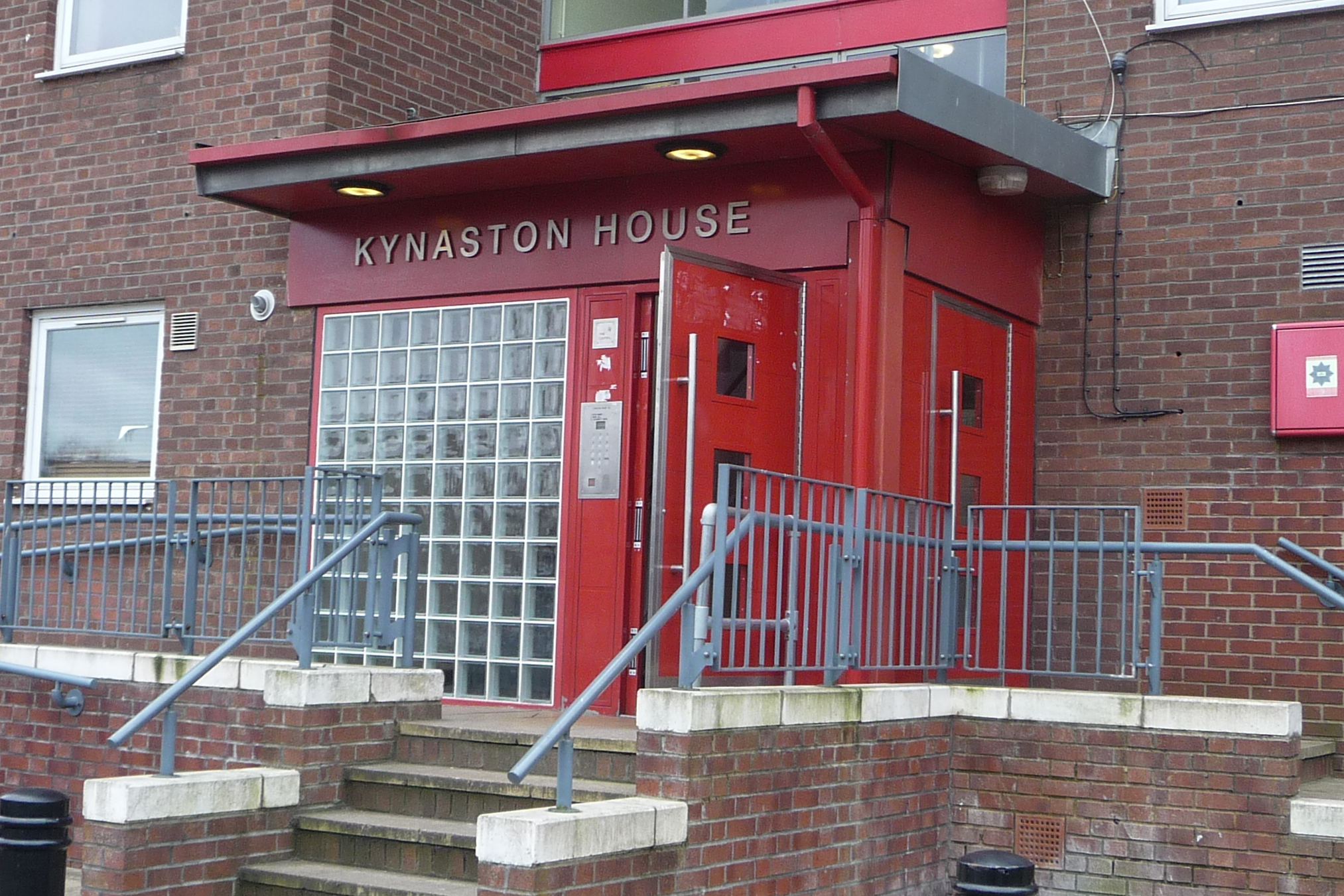 The security door at the front of Kynaston House is broken. The door should automatically close behind everyone who leaves. Instead the door remains open after someone has left, which leaves the entire block very insecure.