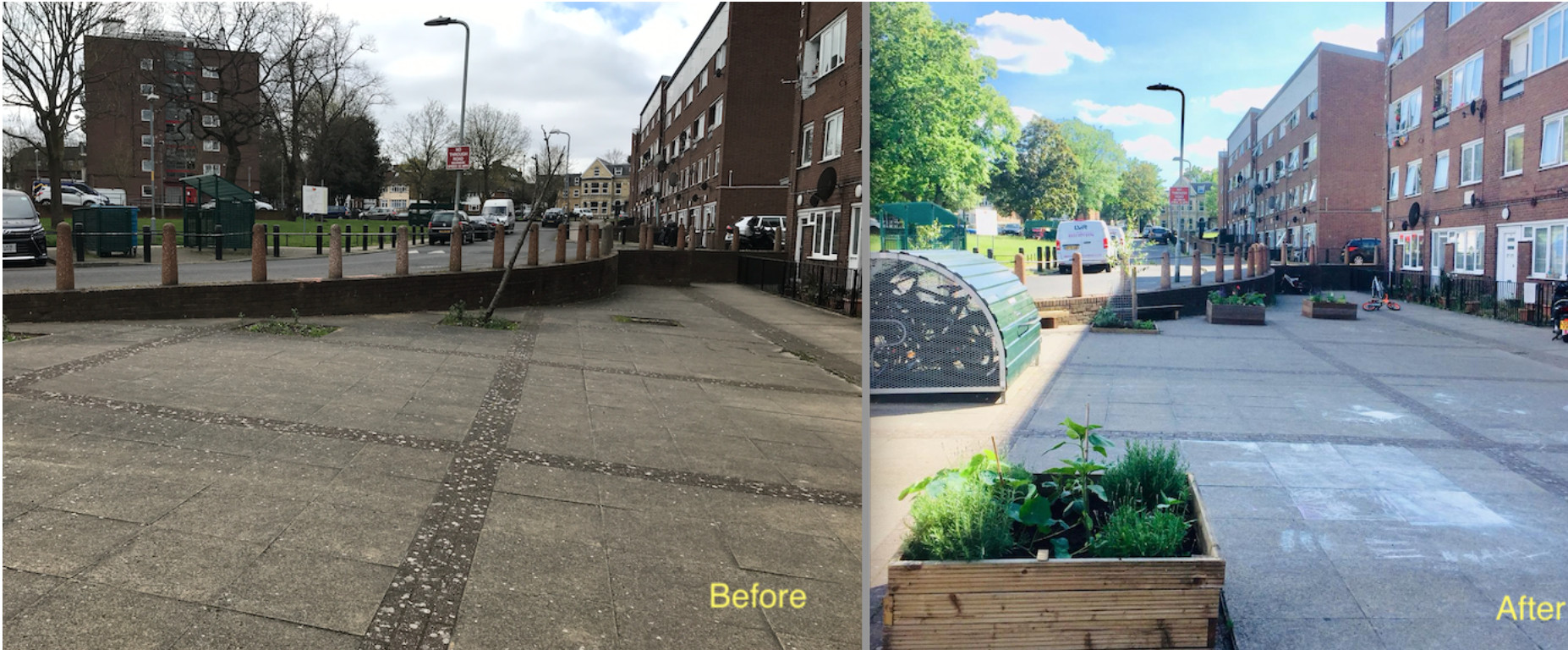 We transformed the space in a much more vibrant and pleasant place, where kids can play and adults can meet.
