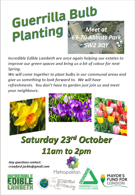 Winter is coming but that doesn’t mean we can’t enjoy our green spaces! Come to 69 Abbots Park on Saturday 23rd October to help tend our garden