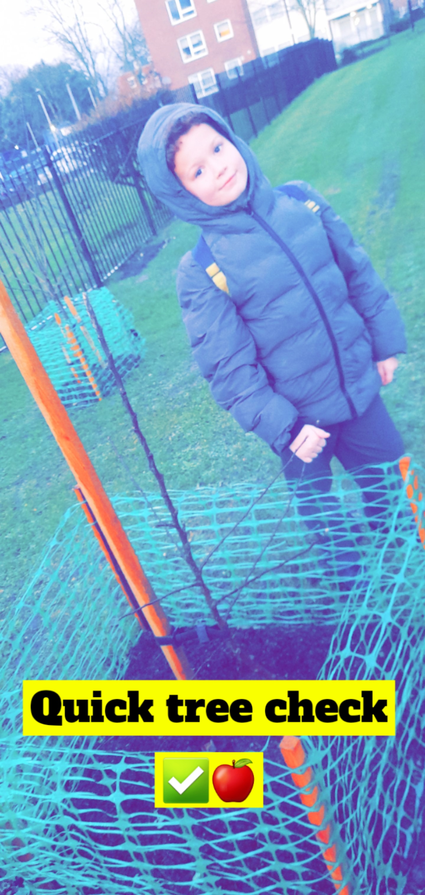 Elis really enjoys checking on the trees too, it gives him a sense of responsibility. He can’t wait to water them, unfortunately (for Elis) all this rain has been doing the job.