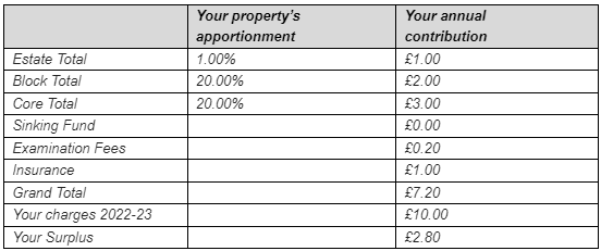 NHG has used a template that makes the content of this letter very confusing. The important information is on the table at the bottom of page 4 of this letter. The final line ‘Your Surplus’ tells you how much NHG owes you for this year. Provided the ‘Grand Total’ row is less than the ‘Your charges 2022-23’ row they will owe you money. An example table is below using made up figures (that are much smaller than the real ones you’ll have) as an example.