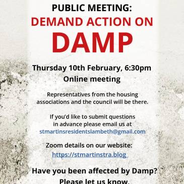 Please come to our public meeting on the evening of Thursday 10th February. Demand real action on damp