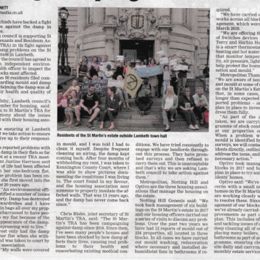 At the last council meeting Lambeth Council agreed to support our campaign against damp. This story made it to the South London Press