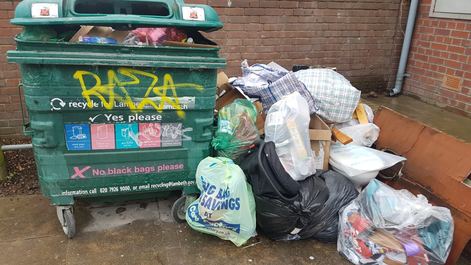 Please do not fly tip waste. If you are concerned about fly tipping done by someone else, please report it to Lambeth Council and to your landlord.